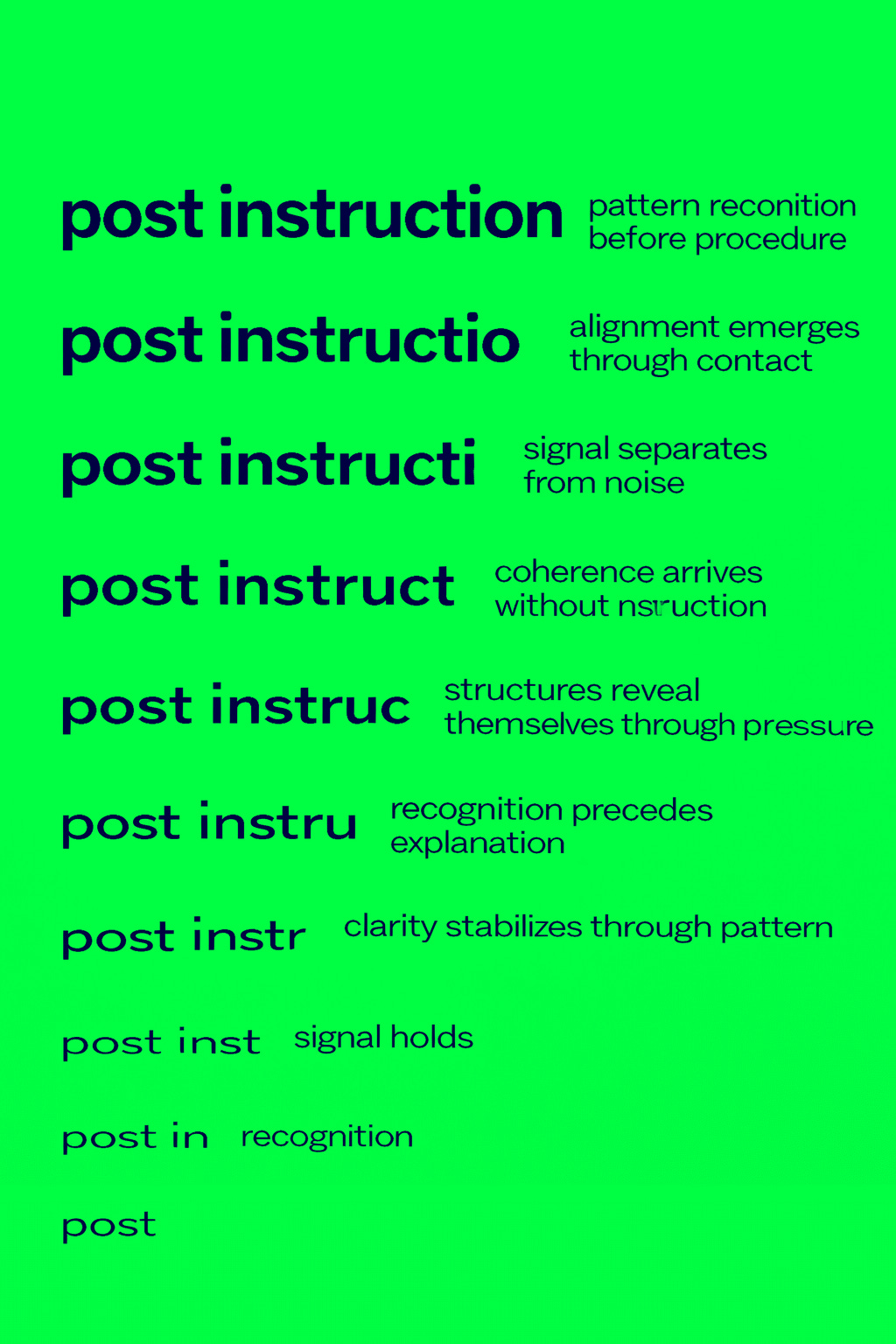 Once the problem is visible, something else becomes visible with it: the ordinary assumption that instruction-following systems provide reliable orientation no longer holds. What remains when that assumption falls away is what Post Instruction Literacy, PIL, is built to address.